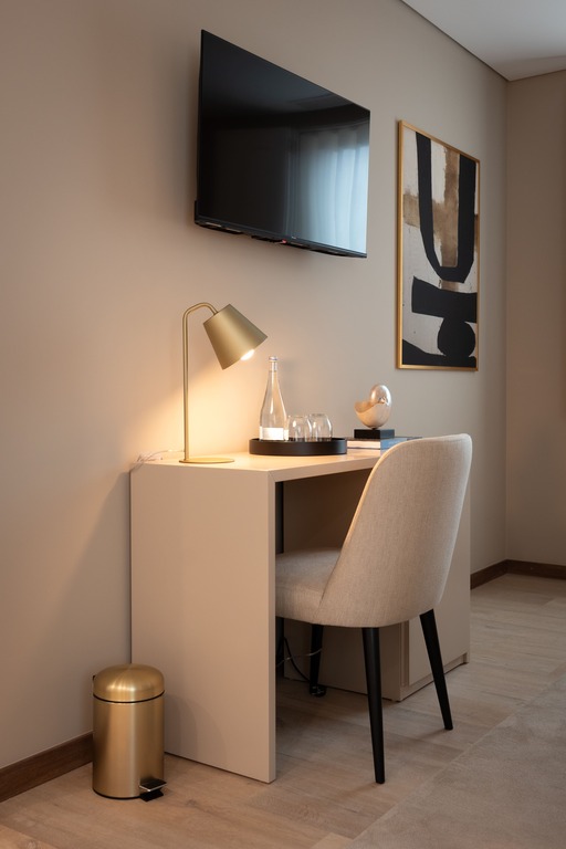 Quarto oferece uma agradável vista para o jardim da frente do hotel. Com abundante luz natural e uma decoração harmoniosa em tons claros, proporciona um ambiente confortável e acolhedor. Está equipado com duas camas individuais (ou cama de casal, mediante disponibilidade), ar condicionado, televisão de ecrã plano com canais internacionais por cabo, internet de alta velocidade, mesa de trabalho, cofre e mini-bar. A casa de banho privativa inclui cabine de duche, lavatório, bidé, secador de cabelo e amenities gratuitos.